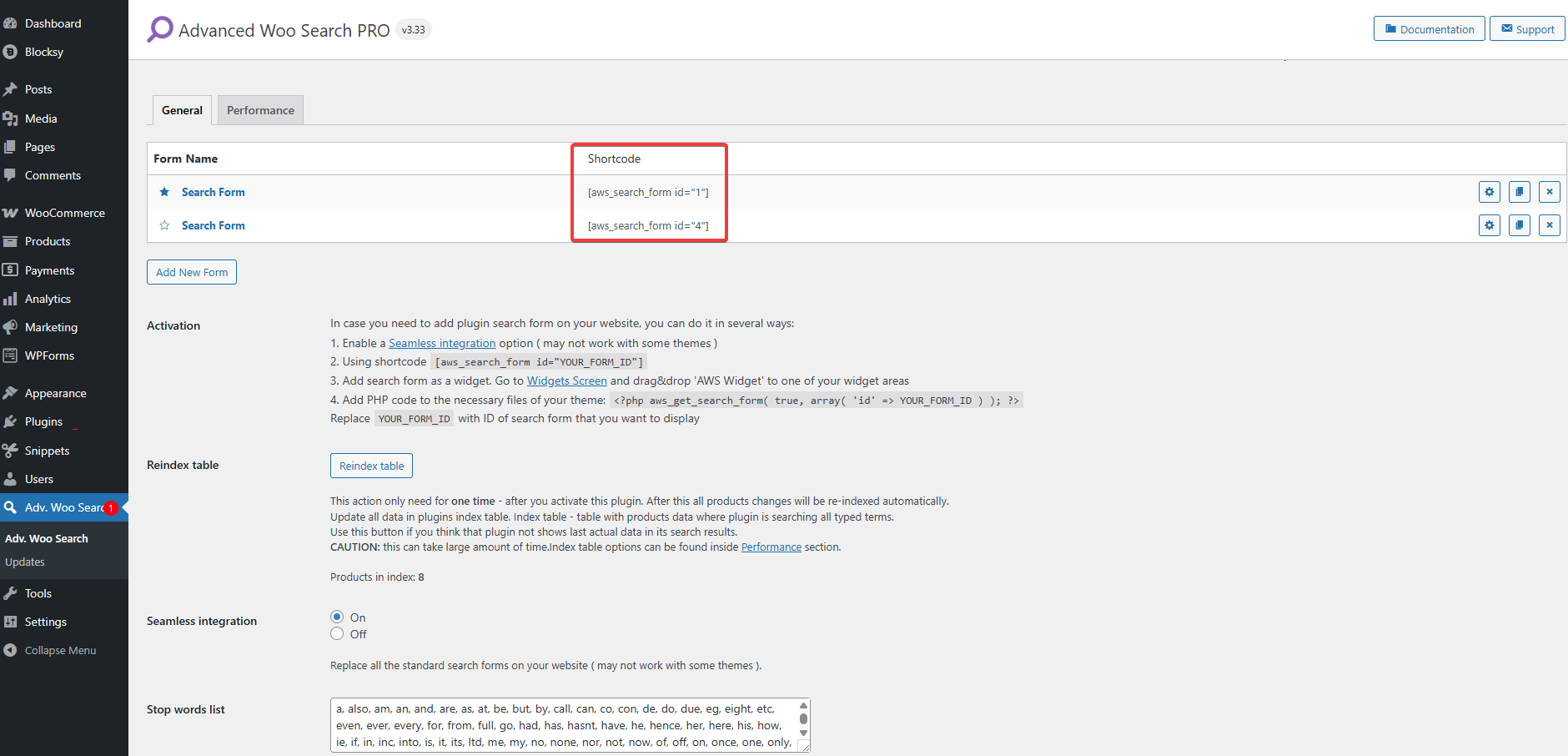 With the Pro version of the AWS plugin, the shortcode unlocks even greater flexibility. You can create multiple unique search forms, each with different filters or configurations, and display them on different parts of your site by referencing their individual IDs.