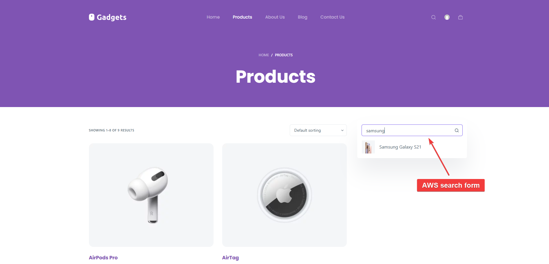 We added the AWS WooCommerce search form shortcode using the AWS widget on the sidebar of our store: