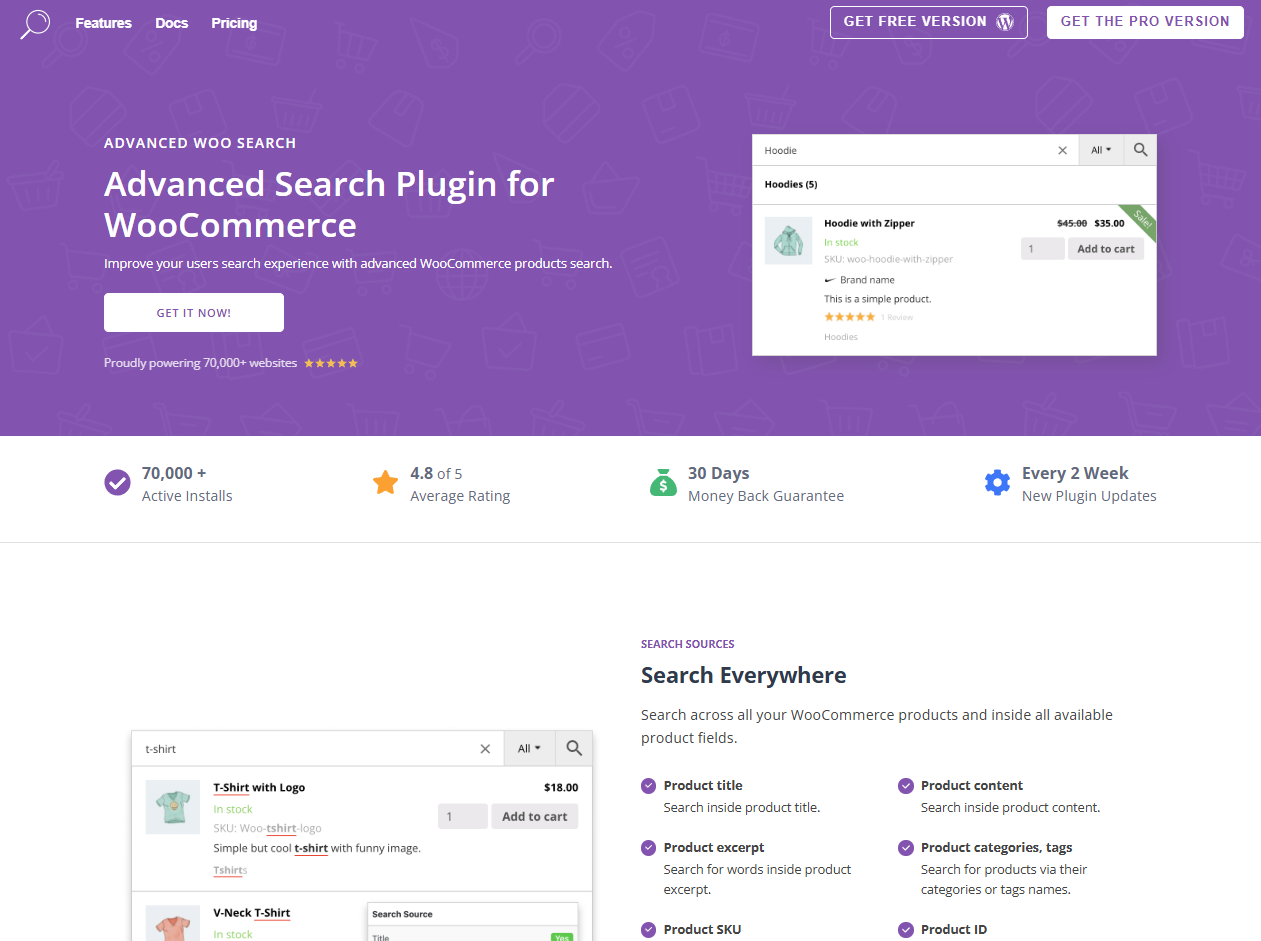 Advanced Woo Search is one of the most widely used WooCommerce search plugins, trusted by over 70,000 websites.