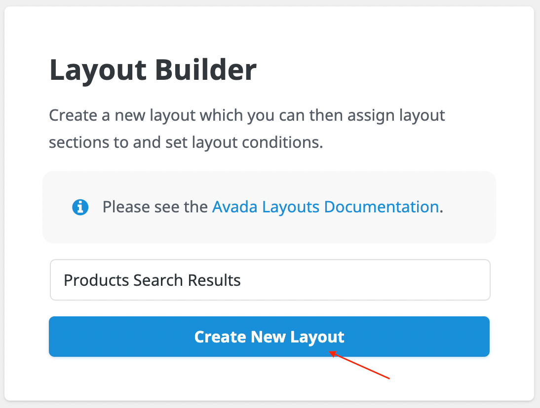 2. Find the Layout Builder box and create a new layout named Products Search Results.