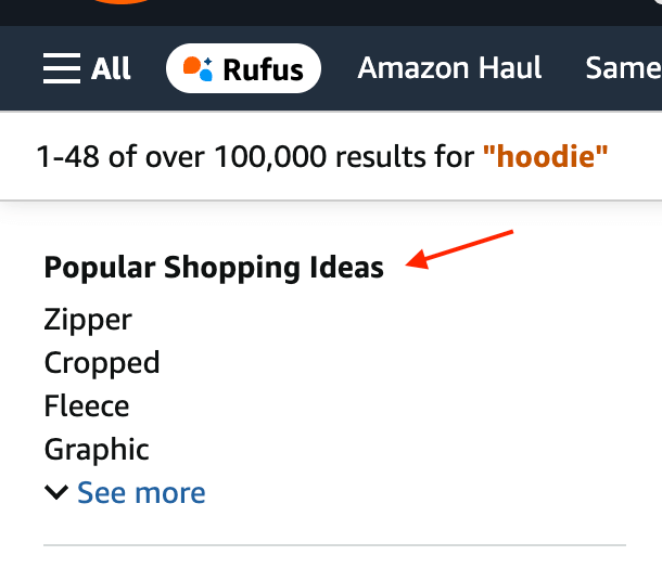 If you're still not convinced – just look at Amazon.com, the leading eCommerce site. Searching for items like Hoodie will show quick search buttons for Zipper Hoodies, Cropped Hoodies, etc.
