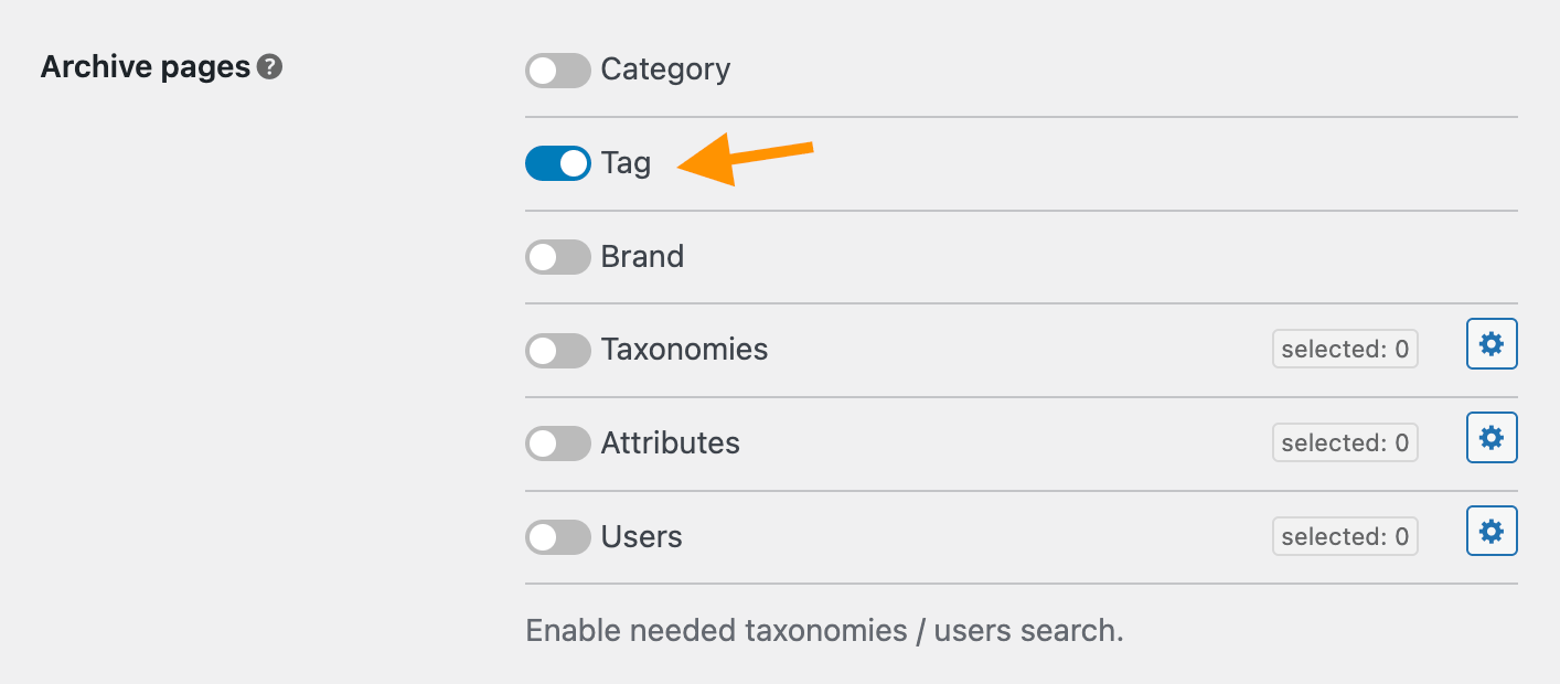 Tags pages search can be enabled the same way as it was done for category terms. Open the plugin settings page and find Archive pages option. Activate Tag setting for it.